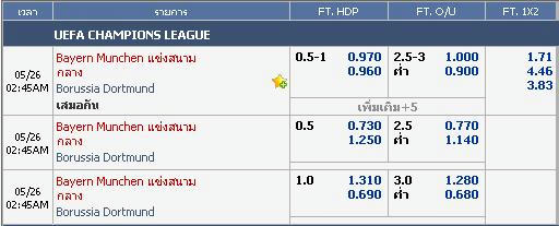 รอง โบรุสเซีย ดอร์ทมุนด์ ราคา 0.5 คูณ 1.250