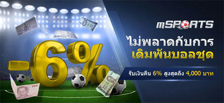 3. สมาชิกจะต้องเดิมพันที่หน้า เอ็มสปอร์ต วางเดิมพันในประเภทบอลชุดขั้นต่ำบิลเดิมพัน 300 บาทต่อบิล และวางเดิมพัน 6 คู่ขึ้นไป