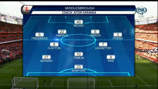 อาร์เซน่อล (พรีเมียร์ลีก) v. มิดเดิ้ลสโบรช์ (แชมเปี้ยนชิพ)